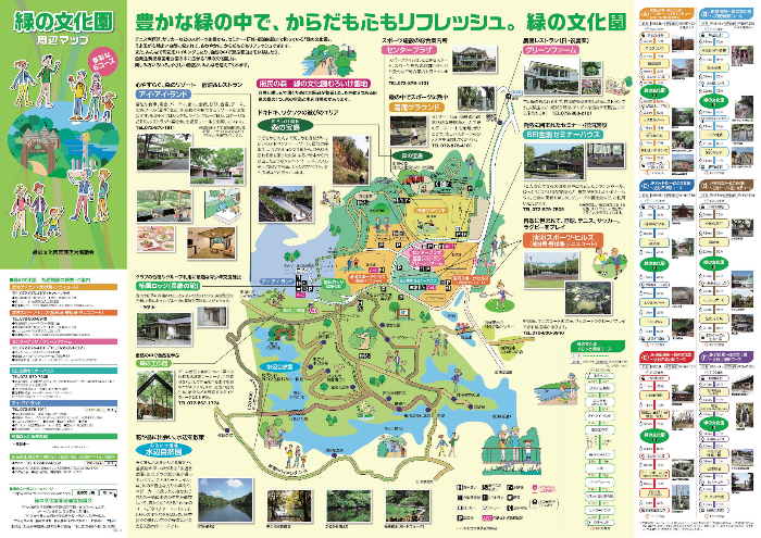 テニスや野球、球技などのスポーツ施設から、セミナー、研修、宿泊施設まで揃っている緑の文化園。そよ風が吹き抜ける自然に包まれて、からだも心もリフレッシュできます。 園内の昆虫や取植物を観察したり、自然の中で遊ぶ面白さを体験したり…と、金剛生駒紀泉国定公園の恵まれた緑の中に広がる緑の文化園は楽しみ方いろいろ。やさしい自然がみんなを迎えてくれます。